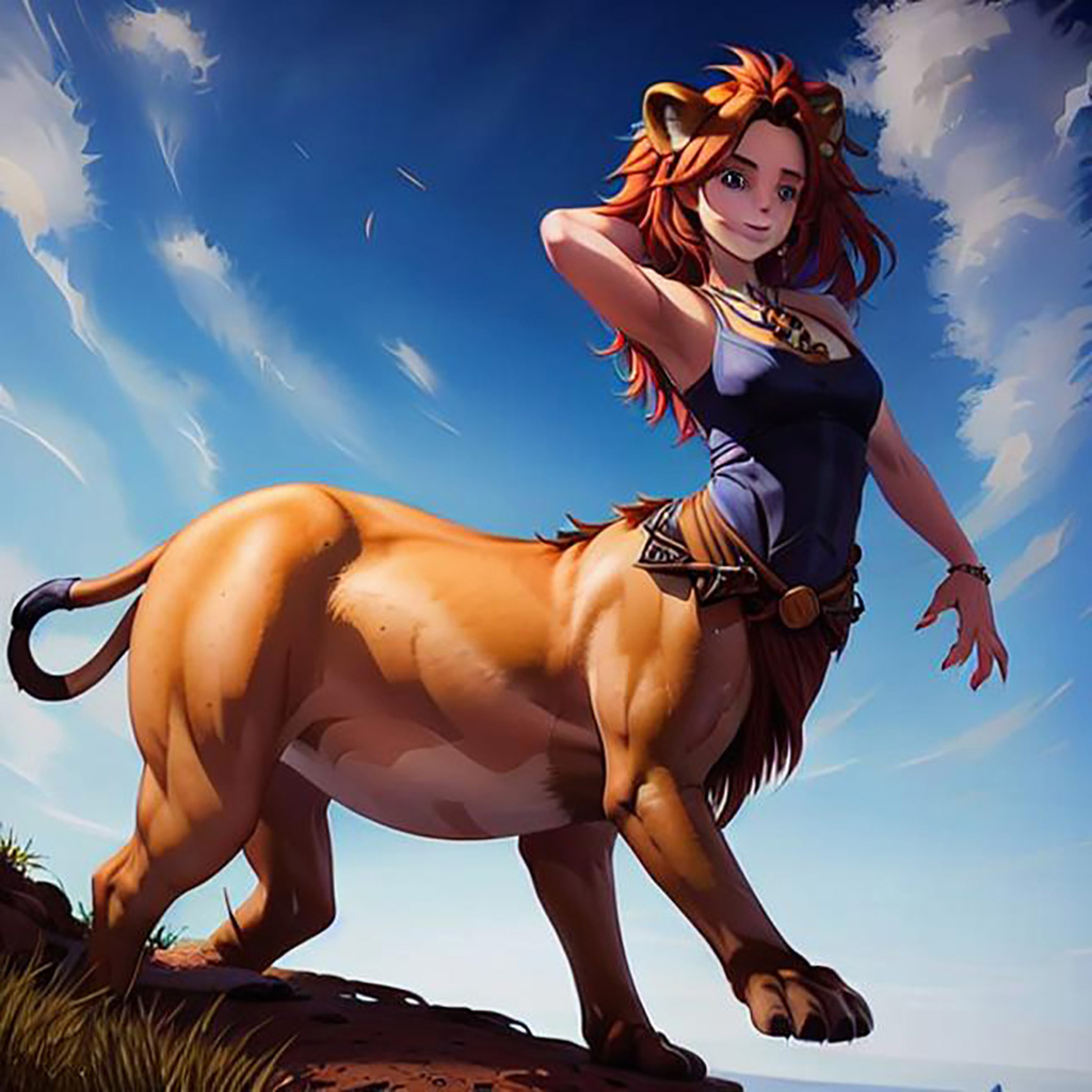 Introduction: Originally the soldiers of the sphinx empire, liontaurs went back to their nomadic hunter and herder roots after the empire fell. Forced to retreat by expansionistic humans, liontaurs are now most likely found in dry lands and savannahs, where their natural talents serve them well. As is often the case for cultures that live on the edge of survival, under conditions of harsh competition, in which wits and strength are paramount, they make necessity into virtue. Liontaurs must hunt and fight to stay alive, so they glorify bravery, persistence, and helping those in need. Their success at carving out a niche and thriving is evident in their noble nature.