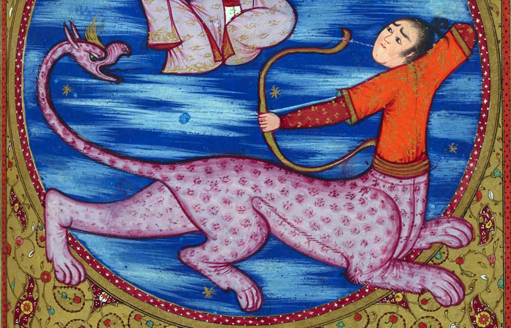 al-qaws in Arabic, 'bow'. A magnificent example showing the archer on a lion's body is found in The Book of Felicity [Fig.10]. Commissioned by Sultan Murad III, the codex was written in the second half of the 16th century; it features descriptions of the twelve signs of the zodiac.